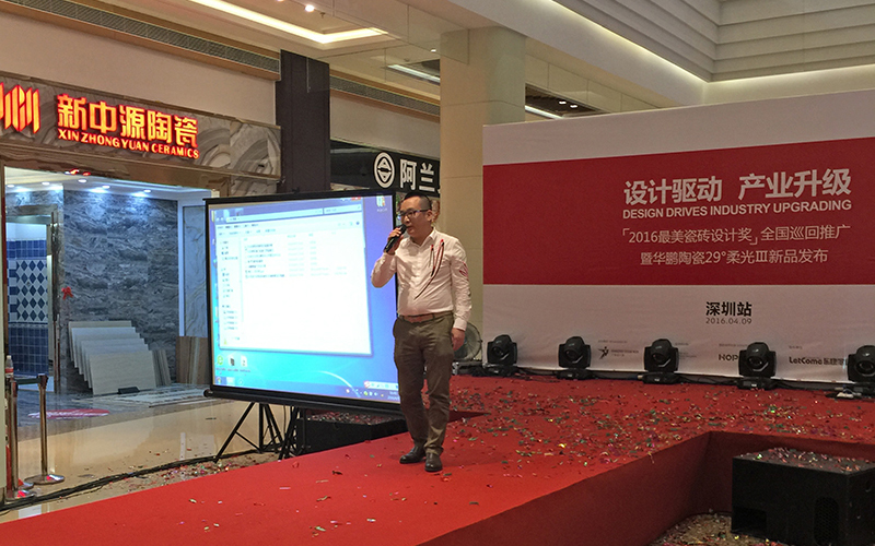2016年4月9日,“產品驅動產業(yè)升級”高峰論壇暨“最美瓷磚設計獎”在廣東深圳成功舉辦,我司總經理劉擁軍及經理劉作平邀參與了這次活動,并在會上發(fā)表講話,以自己在設計領域所取得的經驗和成果為支撐,深入剖析了設計與產品之間的跨界融合。該論壇已被廣東省設計活動整體性區(qū)域品牌“設計廣東”納入平臺框架,作為廣東省“設計走進產業(yè)集群”的一項重要活動在全球范圍內深入展開。“設計驅動產業(yè)升級”已成為中國優(yōu)秀設計師進一步發(fā)展的重要趨勢和手段。